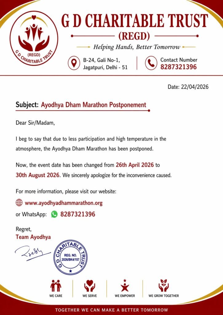 The Ayodhya Dham Marathon, held in Ayodhya, Uttar Pradesh, India, features a variety of race distances catering to different fitness levels and preferences. Participants can choose from distances ranging from 500 meters to 21 kilometers, including 500m, 1km, 3km, 5km, 10km, and 21km races. This diverse range allows people of all ages and abilities to participate, whether they are seasoned runners aiming for longer distances or beginners looking for shorter challenges. The marathon offers an opportunity for people to engage in physical activity, promote health and wellness, and celebrate the cultural significance of Ayodhya, a revered city in Hindu mythology.
